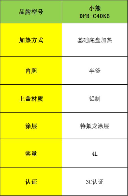 2025年电饭煲排行榜No.4:小熊DFB-C40K6