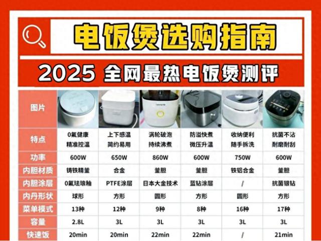 权威发布!2025电饭煲品牌排行榜前五名榜单出炉:怎么选不踩雷? 很多电饭煲只顾着堆砌功能噱头、花哨颜值设计,不提升用料品质,也缺乏对核心性能的调校优化,不仅加热表现差、频频夹生焦糊,高温下还会分解有害物质,重金属超标风险高,对健康损害很大。到底电饭煲推荐2025怎么选 ... 家用电器11-23