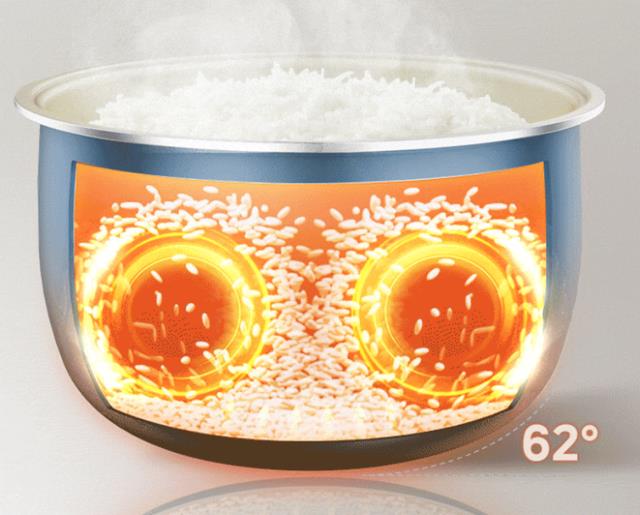 3.合理温控保证米饭食材营养不流失:精准的温控能避免因温度过高破坏食材中的营养成分如B族维生素,米饭食材煮熟后还会自动切换到合适的保温温度,米饭肉菜不凉、不返生。