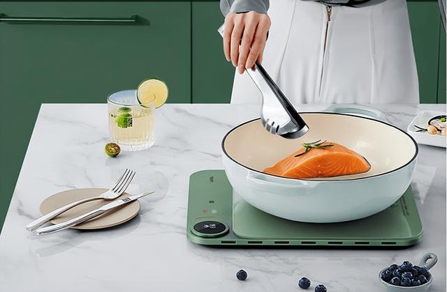 智能温控护锅不黑:其搭载高精度温控系统,可实时智能检测并调节温度,实现持续均匀加热不焦糊,有效保护高端锅具,延长使用寿命。
