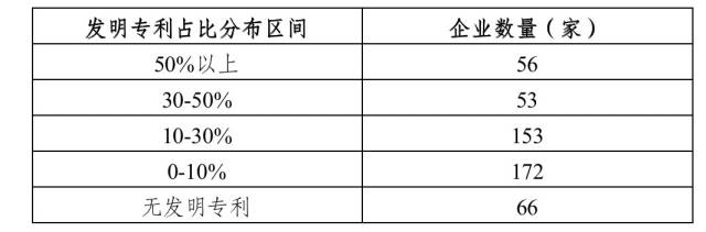从专利质量上来看,专利数总量312995件,其中发明专利数总量84514件,占专利总量的27%,比2021年提升了3.5个百分点。从各企业发明专利占比分布区间来看,比例在30%以上有109家,占广东省制造业500强的21.8%,比2021年增加1.8个百分点。