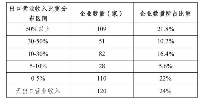 报告显示,越来越多的广东制造业企业角逐国际市场。在2022年广东省制造业500强中,有出口国外营业收入的企业数为380家,占比76%;出口国外营业收入总额为7413.94亿元,占总营业收入的13.4%。其中,出口营业收入占比超过50%的企业有109家,占比21.8%。