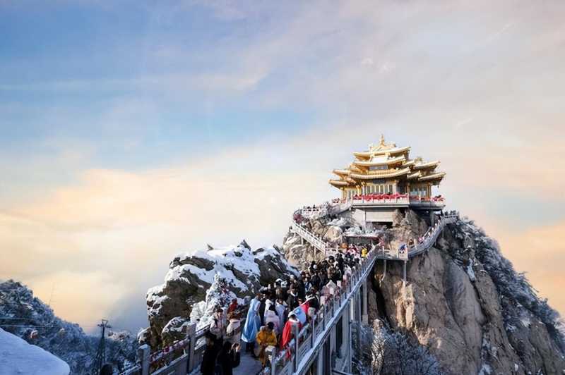这里有金灿灿的宫殿和庙宇群,古代被视为道教圣地!因为海拔高,还能常常看到翻腾的云海,仿佛置身仙境。特别是冬天被白雪覆盖的老君山,简直美呆了!