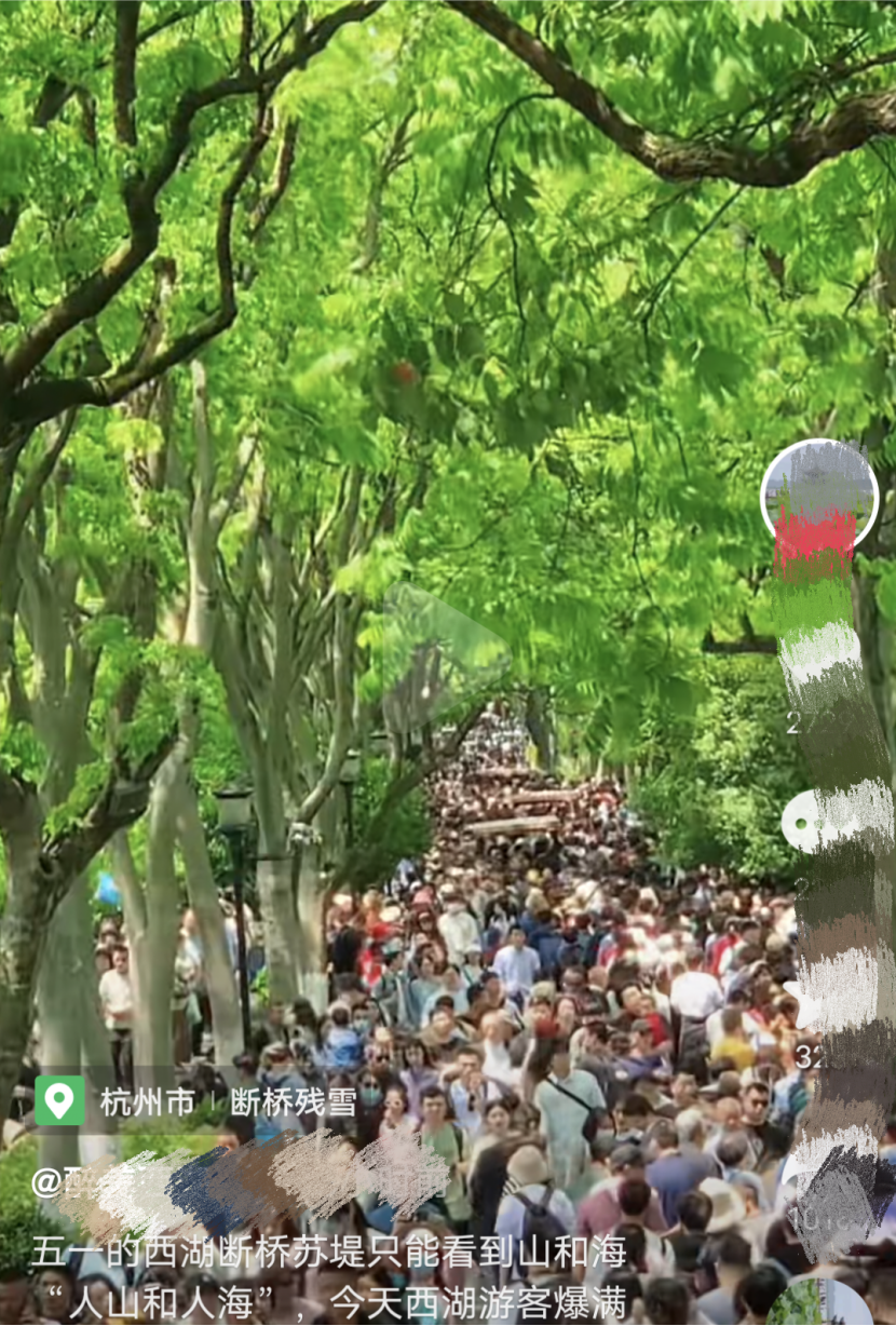 第一名:杭州西湖,“五一”第二天西湖景区接待游客流量69.72万。“最爱湖东行不足,绿杨荫里白沙堤”。西湖到处都是人,断桥变人桥。