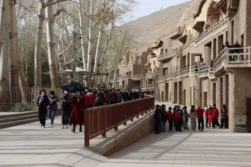 甘肃同样热闹非凡的还有敦煌莫高窟、鸣沙山·月牙泉景区,早在“五一”假期到来前,莫高窟就已经启动了应急门票预售,截至5月3日,莫高窟共接待游客6.2万余人,5月1日为假期接待高峰值,接待1.7万余人;鸣沙山·月牙泉景区“五一”假期期间(4月29日-5月3日)游客达到9.4万余人,比2019年增长54%。