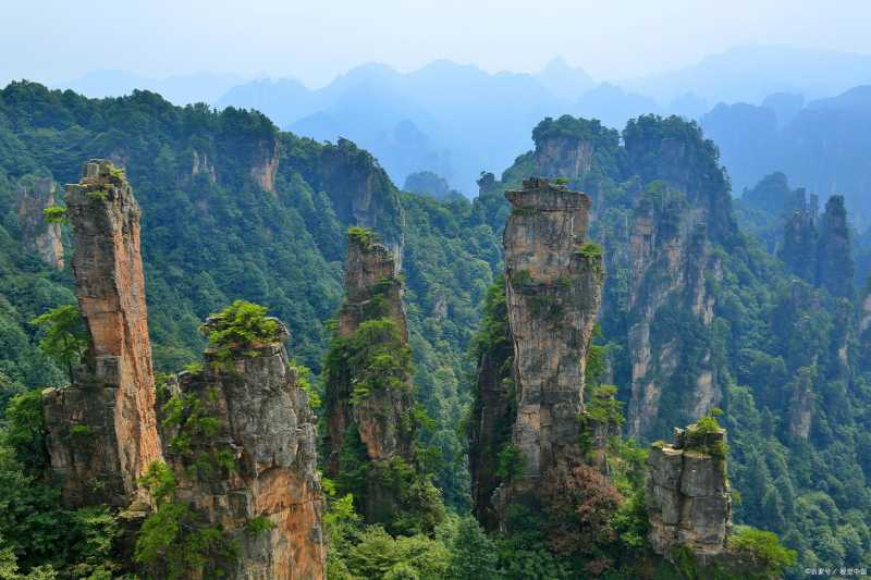 “三千石峰拔地起,八百秀水绕山回”,俗话说九寨沟看水,张家界看山。素有奇峰三千,秀水八百的张家界是我国第一家国家级地质森林公园,位于湖南省张家界市武陵源区,由黄石寨、金鞭溪、袁家界等景区组成。景区内数以千计的石峰,次第层峦,构成了一副独一无二的水墨仙境,幽谷生烟,缥缈于峰林仙境之间,如画如幻美不胜收。