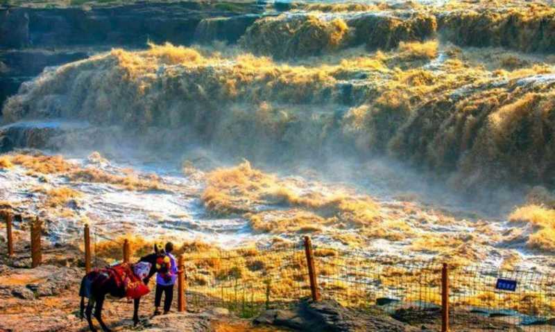 壶口瀑布是中国第二大瀑布,世界上最大的黄色瀑布。黄河奔流至此,两岸石壁峭立,河口收束狭如壶口,故名壶口瀑布。瀑布上游黄河水面宽300米,在不到500米长距离内,被压缩到20—30米的宽度。1000立方米/秒的河水,从20多米高的陡崖上倾注而泻,形成“千里黄河一壶收”的气概。景区内九曲黄河Hi元宇宙沉浸漫游馆科技感十足,也是众多游客必打卡之地。