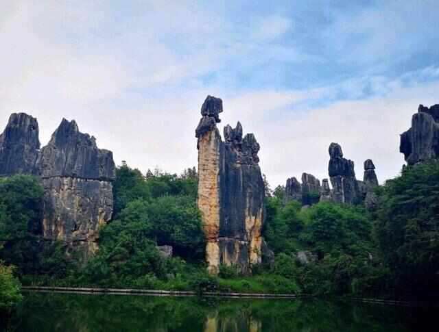 石林风景区位于昆明石林彝族自治区内,世界地质公园,世界自然遗产,是世界上唯一位于亚热带高原地区的喀斯特地貌风景区。由大,小石林组成,小石林如厚而坚实的石墩,像屏风,著名的景点阿诗玛区。大石林,有如一片石盆地,又像一片林海,石柱,石峰,石壁千姿百态,维妙维肖。