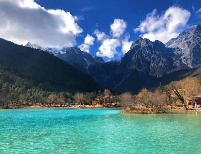 蓝月谷位于玉龙雪山东麓甘海子以北,云杉坪南侧的山谷之中,因水像一轮蓝色的月亮镶嵌在玉龙雪山脚下,所以叫蓝月谷。蓝月谷,是雪山冰川的万古冰雪消融之后顺峭壁流淌而下,不断汇集为山涧,溪流最终在蓝月谷上游深谷之中形成清澈见底,甘冽无比的河流,蓝蓝的湖水在玉龙雪山的映辉下,美到极致。