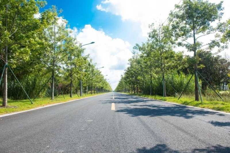 道路两侧新增娜塔栎行道树218棵,寓意着2018年启动乡村振兴工作,树叶在春秋季会变换不同的色彩。两旁改造近3万平方米的景观绿化,增设路灯、道路标志标线等安防设施,同时将原道路两侧的通信架空线实施入地改造,农村生活污水、天然气、自来水管网全部铺设到位。
