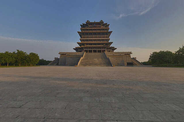 这个鹳雀楼原本是北周时兵家修建一个军事建筑,位于山西省永济市蒲州古城西向的黄河东岸,楼体壮观、结构奇巧,加之地理位置优势、风景秀丽,唐宋时期文人学士登楼赏景,留下许多不朽诗篇。其中王之涣诗“白日依山尽,黄河入海流;欲穷千里目,更上一层楼”堪称千古绝唱。鹳雀楼立晋望秦,它独立于中州,前瞻中条山秀,下瞰大河奔流,紫气度关而西入,黄河触华而东汇。龙踞虎视,下临八州,宏伟壮阔的山川景象,吸引了无数历代名流登临作赋。鹳雀楼,凝聚着太多厚重的历史,叙述着太多的辉煌与落寞……