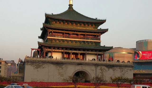 西安鼓楼是所存在中国最大的鼓楼之一,位于西安城内西大街北院门的南端,东与钟楼相望。鼓楼始建于明太祖朱元璋洪武十三年,清康熙三十八年和清乾隆五年先后两次重修。楼上原有巨鼓一面,每日击鼓报时,故称“鼓楼”。李允宽所书写的“声闻于天”的匾额,画龙点睛,说明了鼓楼的实际意义。高处的宝顶在阳光下熠熠闪光,使这座古建筑更散发出其金碧辉煌的独特魅力。鼓楼内设有楼梯,登临楼上,凭栏便能眺望全城景色。