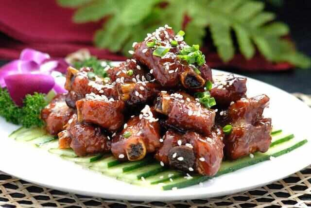 糖醋小排是上海的传统名菜,选用猪排骨为料,经炸煮、收汁、糖醋勾芡等工艺制作而成,口感酸甜适口,排骨酥嫩。