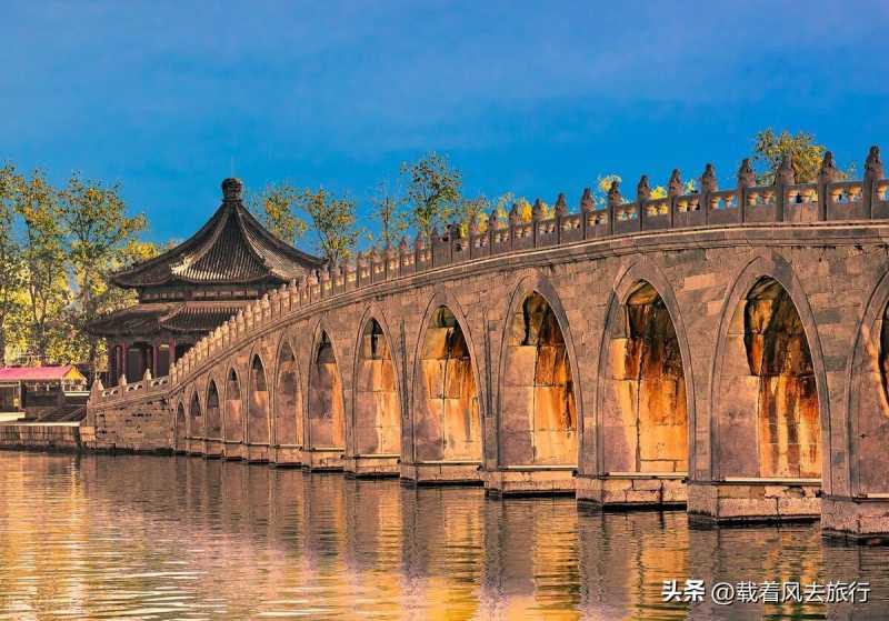 颐和园是中国清朝皇家的行宫,也是北京最大的皇家园林。颐和园以其精美的园林景观和建筑而闻名,包括著名的长廊、大石船和十七孔桥。