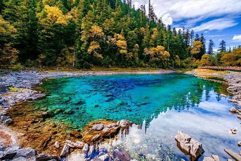 有着独特的湖泊、瀑布和彩色的湖水,这些湖泊和瀑布的颜色在阳光的照射下变得异常美丽,令人目不暇接,堪称“冠绝全国”。此外,还有许多不同类型的植物和动物,包括珍稀的熊猫和金丝猴。