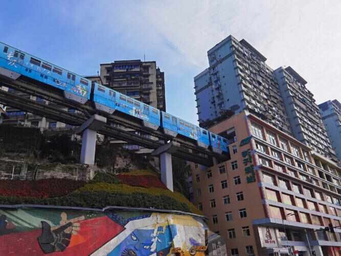 李子坝是一座因独特建筑外观而成为重庆市旅游景点的轻轨车站。从车站内部可以欣赏到重庆山城的美丽景色。