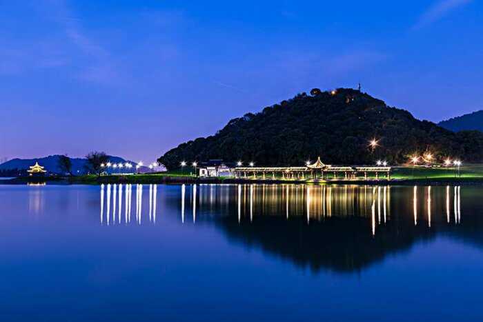 位于浙江省杭州市兼山区风情大道2758号,湘湖夜景十分优美,并且免费对外开放,而观赏湘湖夜景的最佳位置便是北湖畔的夜月亭。每天晚上,湘湖都会有一场水景秀表演,游客可以购票在湖山广场内的“水景秀”景点观看,也可以选择乘坐茶吧船,在湖面上观看,或是乘坐电瓶观光车,在青山绿水之中观赏,美仑美矣的效果更是赏心悦目。