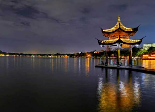 位于浙江省杭州市西湖区龙井路1号,杭州西湖作为杭州的一张国际名片,无论是白天还是晚上的景色都是特别的美丽,西湖最著名的夜景就是西湖音乐喷泉,每天晚上喷泉的玄幻的灯光搭配上优美的音乐,让游客领略西湖美景,令人流连忘返。