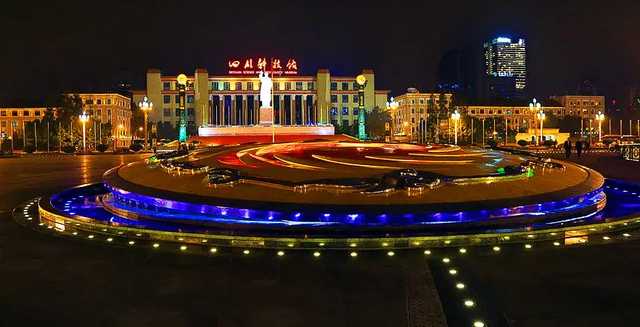 位于四川省成都市青羊区人民南路一段,天府广场既是成都市的经济、文化和商业中心,又是成都市的交通枢纽地带,一直以来都是成都乃至四川的象征,更是成都的一张城市名片。夜晚的天府广场流光溢彩、漂亮至极。在彩灯照射下的太阳神鸟雕塑,仿佛披上了一件金色的外衣。