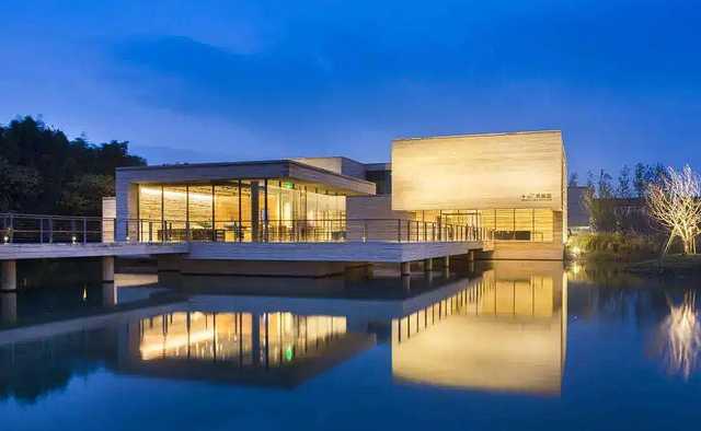 位于浙江省嘉兴市桐乡市乌镇,总共占地面积27亩,乌镇大剧院是首届乌镇国际戏剧节的主场馆,其集戏剧、音乐会演出、会展、文化艺术交流多功能为一体,在设计从并蒂莲意念生发,俯视宛如一朵盛开于湖面的并蒂莲,外墙以古法京砖及老船木冰裂纹窗棂饰面,又被称为中国最美的剧场。特别是晚上的时候特别的漂亮。