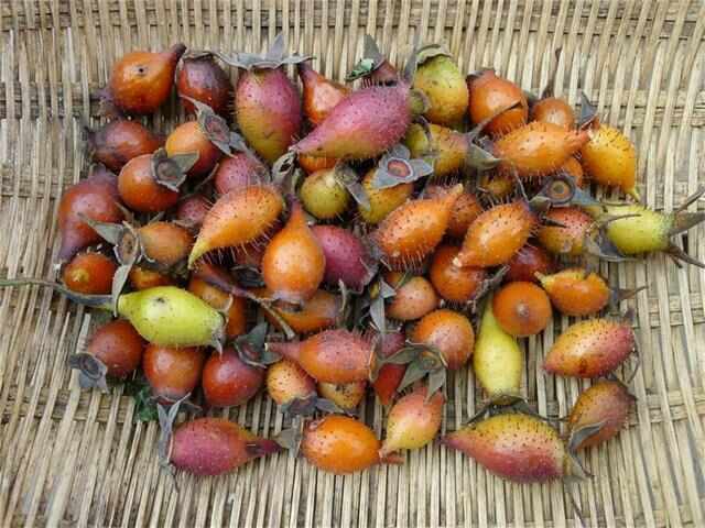 金樱子大多分布在我国江苏、湖南、广东、浙江、湖北等省份,一般生长在200到1600米的山野或者灌木丛地带。常在农村生活的朋友们,对金樱子果实肯定十分熟悉,它对土壤的要求不高,但是对阳光、温度、湿度等条件的要求却很高,北方地区一般很难见到这种野果。金樱子的果实表面长有小刺,还在生长中的果实颜色呈红黄色或者红棕色,成熟之后的金樱子果实呈黄色,这也是这种果实名字的由来,并且颜色越黄吃起来的口感越美味!
