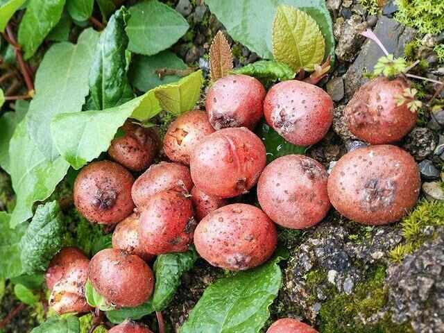 这种野果长得特别像石榴,只不过要比石榴的个头小很多,它并非生长在树上,而是匍匐长在地面上,也许在哪个不经意的瞬间你就能发现它的身影。尚未成熟的地石榴呈青色,成熟能吃的地石榴呈紫色,所以下次见到紫色的地石榴时才能采摘着吃,因为只有这个时候的地石榴味道最美味。把地石榴掰开之后,里面的果实一粒一粒的,看起来就非常诱人,据说吃起来还相当有嚼劲儿,爱吃甜野果的朋友们一定不要错过地石榴。另外地石榴还有清热利湿、活血化淤等功效。