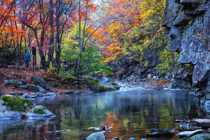 山美水美的绿石谷,夏天是童话里的绿野仙踪,繁茂的绿树遮天蔽日,还有蜿蜒的溪流和瀑布,空气清新,纯天然的大氧吧,很适合避暑纳凉;秋天的绿石谷就是五彩斑斓的人间仙境,游人很少,风光迷人。