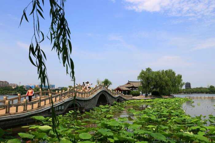 风光秀丽的大明湖,为济南三大名胜之一,由济南众多泉水汇流而成,被称为中国第一泉水湖,拥有秀丽绝美的自然风光,也保留着众多历史遗迹,慢慢闲逛,清秀美景相伴,感受一城山色半城湖的意境。