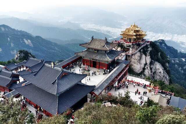 老君山原名景室山,海拔2217米,是八百里伏牛山主峰,因道教始祖老子归隐修炼于此而得名,是中国北方道教信众拜谒圣地,也是中原山水文化杰出代表。老君山景区以雄、险、奇、秀而闻名天下,锦山秀水,风景如画,巨阙壁立,千峰竞秀,山中具有独特的“滑脱峰林”地貌、壮观的石林景区等景观群一步一景,景景如画,故称之为“十里画屏”。山顶峰的老君庙,规模极大,有“南有武当金顶,北有老君铁顶”之说。尤其是当云海出现时,山岭若隐若现,而绝壁道观似琼楼玉宇,有天宫既视感。