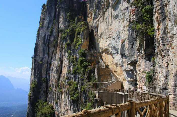 黄鹤桥峰林海拔1200—1300米,属于类似张家界和柴埠溪的峰林地貌,区内奇峰林立,绝壁高耸,各种大小石柱、奇峰、怪石、深谷、天堑、地缝、绝壁俱全,仅“一线天”景观就有多处,而且形态各异,妙不可言。此地奇峰林立,绝壁高耸,"欲与天公试比高",绝壁间有一垂直狭缝,传说是黄鹤高飞之处,后人曾经搭桥联"天"接"地",故名"黄鹤桥"。黄鹤桥峰林面积约3平方公里,景观奇异,深藏悬崖绝壁之间。雄伟奇特的峰林景观在岩溶地貌中十分罕见,可谓“奇峰异石大观园”,是买购网小编推荐的中国最美奇峰景区之一。