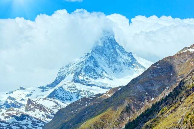 马特峰是阿尔卑斯山脉中最著名的山峰。马特峰的位置在瑞士、意大利边境,附近是瑞士瓦莱州小镇采尔马特和意大利亚奥斯他谷的小镇布勒伊-切尔维尼亚。马特峰是一个有四个面的锥体,分别面向东南西北。每一个面都非常陡峭,因此只有少量的雪黏在表面,间中发生的雪崩把过多积雪推到峰下的冰川里。登峰者惯常从东北角的Hörnli山脊上山。