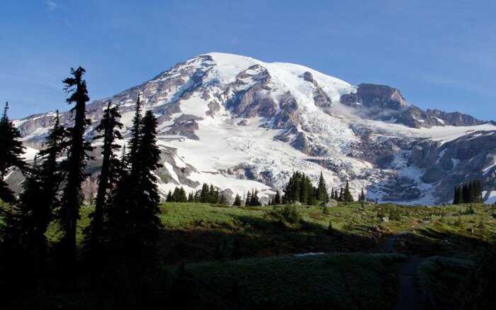 雷尼尔山国家公园是一座以雷尼尔山为中心的公园,位于美国华盛顿州皮尔斯县,西雅图的东南方85公里处。海拔4,391米。圆锥型火山。基盘为花岗岩,火山体为安山岩。喷发在1870年,现仅喷少量蒸汽。附近有温泉。山麓和低坡生长着针叶林(冷杉、松等),海拔2,600—2,800米为高山草甸,更高为永久积雪和冰川。1899年辟为雷尼尔国家公园。1899年为保护雪裹冰封的雷尼尔山自然景色而建立了国家公园。