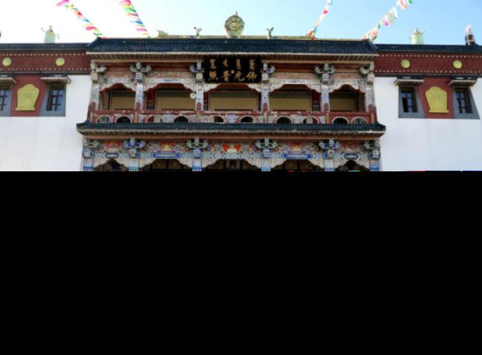 这里的建筑风格是中藏结合的风格,白墙绿瓦,整栋建筑非常美丽,各色的经幡在寺内随风飞扬,承载着无数美好的期望,感受佛家胜景的韵味。