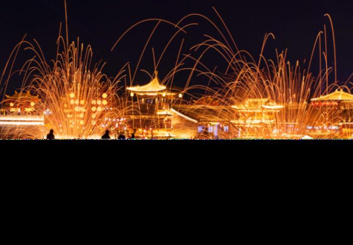 在沂水彩虹不夜城,科技与古风完美融合,现场灯光璀璨,热闹非凡。精致的灯笼、流光溢彩的灯光……给游客带来一场视觉的震撼体验。