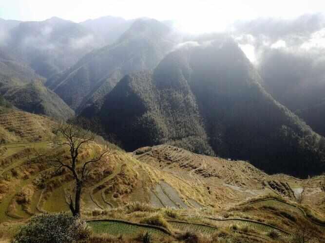 中国最美梯田之一,也是华东最大的梯田群,远山青黛间,层层叠叠的梯田错落有致,曲线优美,一年四季风光各异,景色很壮观,云雾缭绕间,随手一拍都是绝美画卷,看一场日出云海,绝美而震撼!