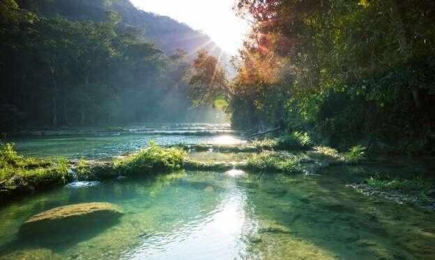 隐藏在危地马拉的Semuc Champey溶洞是一处难以到达但令人陶醉的天然泳池。清澈的水域被石灰岩洞穴和葱郁的森林所环绕,为游客打造了一个宁静宜人的泳池,成为游泳者的天堂。