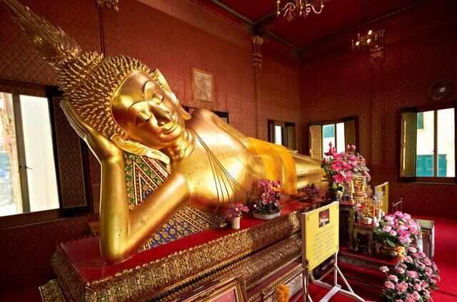 卧佛寺是位于曼谷老城的一座美丽的寺庙,它那里面巨大的卧佛是很受欢迎的,卧佛有46米长。卧佛寺距离宏伟的宫殿只有很短的步行距离,与郑王庙隔江相望,这样你就可以一起游览所有那些神奇的地方。