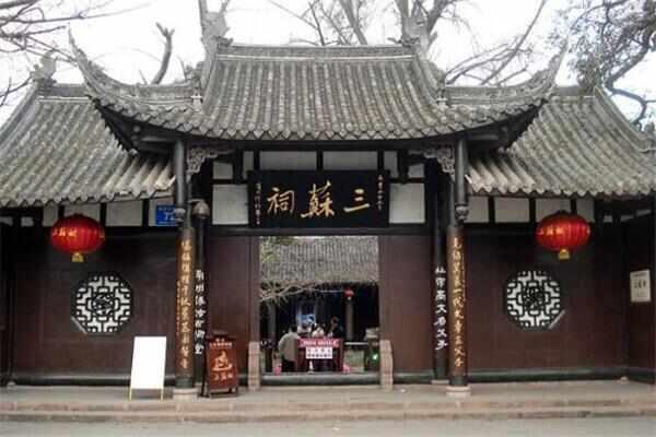 三苏祠是我国著名文学家苏洵、苏轼、苏辙的故居。三苏祠既保持了苏氏故居的风貌,又体现了祠园建筑的古朴幽深。肃穆中有疏朗之气,典雅中而洋洋大观。庭园红墙环抱,绿水萦绕,古木扶疏,翠竹掩映,形成三分水二分竹的岛居特色。