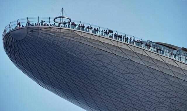 新加坡空中花园如同一个巨型的冲浪板横跨在三座酒店顶部,距离地面约200米。它建在在滨海湾金沙酒店,可以俯瞰周边风景。