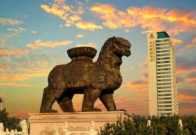 沧州铁狮子,又称镇海吼,位于河北省沧州市沧县旧州镇东关村23号,始建于后周广顺三年(953年)。沧州铁狮子身高5.78米,长5.34米,宽3.17米,体重约50吨,徐徐如生的铁狮是我国大型的惊巧铸铁工艺,距今已有一千多年的历史,它充分的显示出我国古代劳动人民的智慧和艺术才华。
