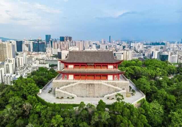 镇海楼位于福州古城中轴线起点的屏山顶部,为古城最高楼,重檐飞角、冲霄凌汉,身处阁楼上,西可观西湖,南可望“两山”,福州中心城区风光尽收眼底。