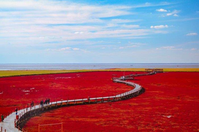 红海滩风景区是一处位于盘锦市大洼区境内的国家5A级风景区,整个景区不仅风景优美,拥有大连的自然景观和人文景观,同时在其中还栖息着数万只鸟类,历来也凭借其著名的红海滩奇特景观闻名于世,吸引了大量的游客,在其中现已拥有红海滩水排,苇海迷宫以及冰山娱乐区等著名景点,是一个集休闲旅游,娱乐观光等为一体的综合性旅游风景区。