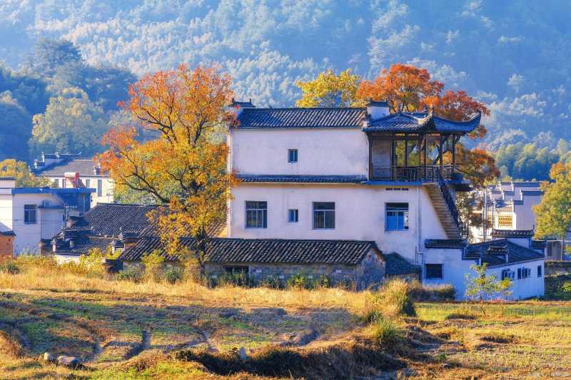 8. 江西婺源:每到秋天,婺源的红枫与白墙黑瓦的徽派建筑相互映衬,形成别具特色的景观。