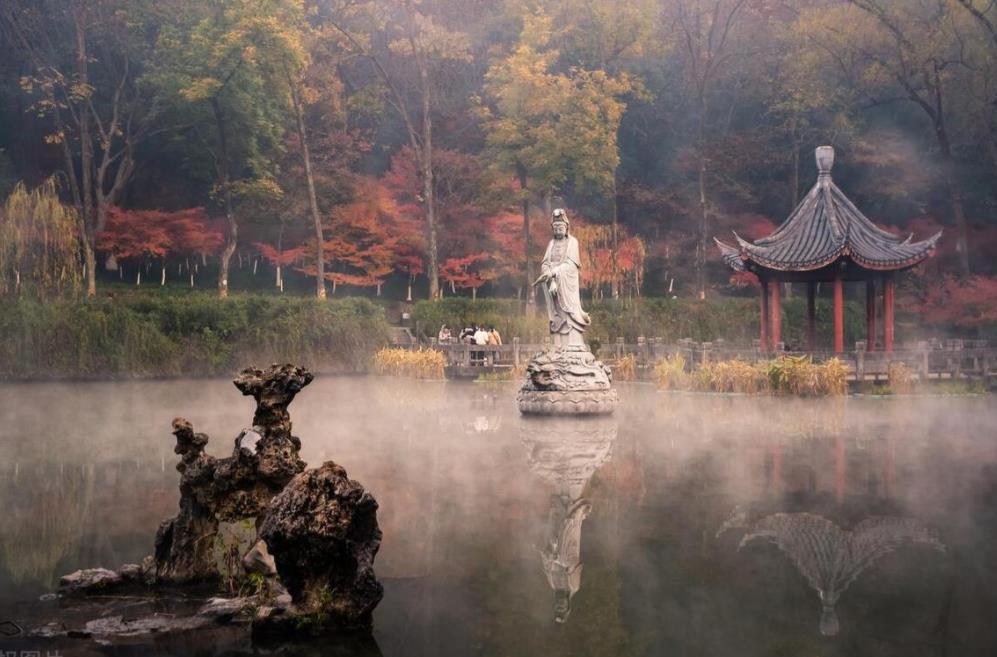 栖霞山的秋天也是一绝,尤其是十一月中下旬。我去年去的时候,整座山都染成了红色,跟火烧一样。坐在古寺听钟声,看满山红叶,那感觉,太安逸了!