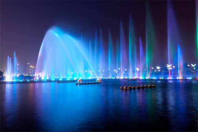 秋水广场是南昌的地标性景点,以其音乐喷泉而闻名,拥有亚洲最大的音乐喷泉群,是市民休闲娱乐的好去处。秋水广场位于江西省南昌市红谷滩区的赣江之滨,与滕王阁隔江相望,取名来自《滕王阁序》中的“秋水共长天一色”。