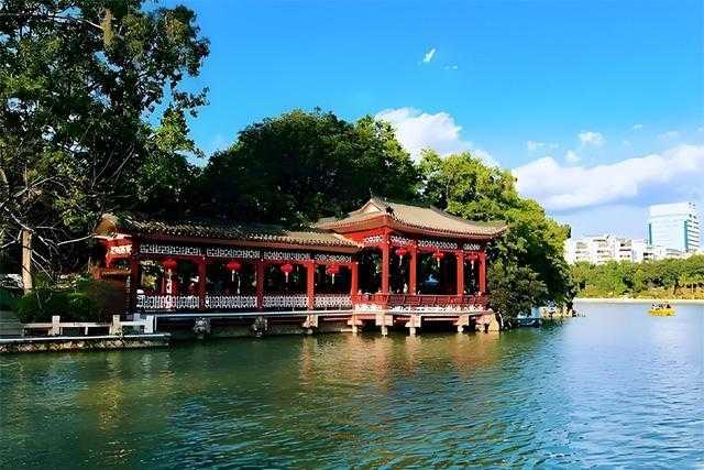 福州西湖公园位于福州市鼓楼区,至今已有1700多年的历史,是福州保留最完整的一座古典园林,被人称为“福建园林明珠”,名列全国36个西湖前茅,为国家3A级旅游景区。公园总面积46.48公顷,其中湖面面积29.21公顷。西湖公园是典型古典园林“一池三山”布局。
