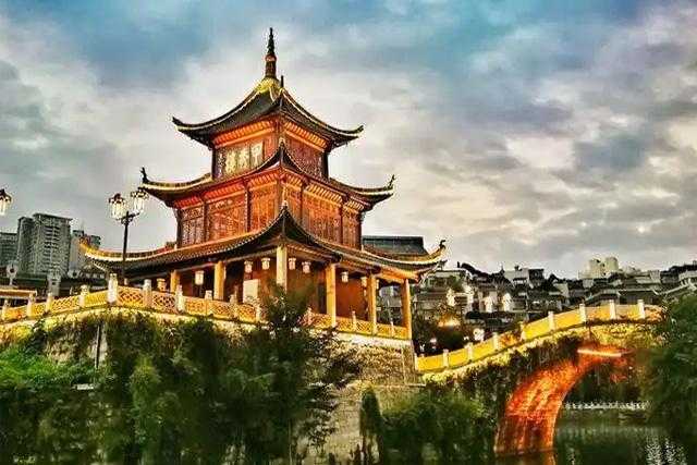 文昌阁,贵阳的地标建筑,始建于明万历二十四年(1596年)。这是一座以文昌阁楼为主体的木质结构的古建筑群,古朴浑厚,典雅端庄。主体建筑文昌阁楼,造型别致,结构奇特,国内仅见。颇具艺术和科研价值,深受建筑专家的注目,受到中外游客的称赞。原为供奉文昌帝君之所,现是省级重点文物保护单位。