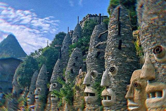 花溪夜郎谷位于贵州省贵阳市花溪区境内,占地200多亩,是一个以夜郎文化为主题的旅游景点。与花溪夜郎谷相对的斗蓬山相传曾是夜郎王后继金竹司的住所,山顶上至今仍保留着古夜郎屯堡的遗址,花溪夜郎谷也因此得名。景区内有按照古代夜郎建筑风格重建的宫殿、庙宇和民居,这些建筑利用当地的石材和废陶器巧妙构建,展现了夜郎文化的独特魅力,并融入了现代艺术的元素。