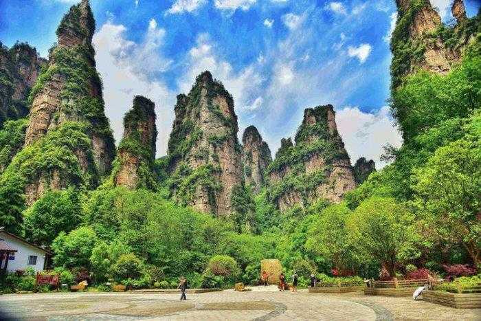 袁家界位于张家界国家森林公园内,有独特的石柱群和云雾缭绕的景象,是观赏张家界奇峰异石的绝佳地点,其中“哈利路亚山”等景点令人称奇。