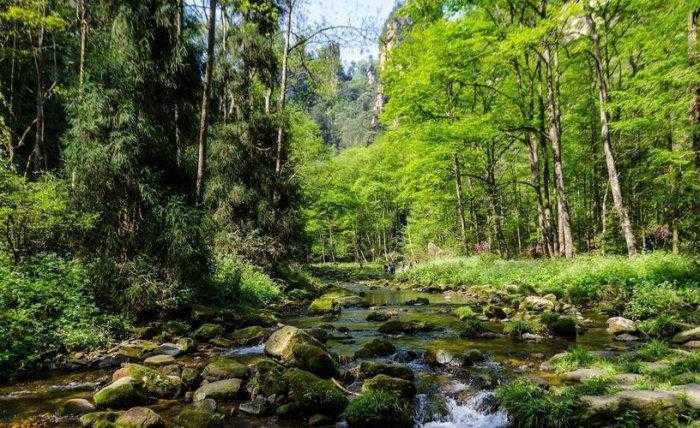金鞭溪全长7.5公里,沿途有许多景点,如金鞭岩、神鹰护鞭、文星岩、紫草潭、千里相会等,被誉为“世界上最美丽的峡谷之一”。